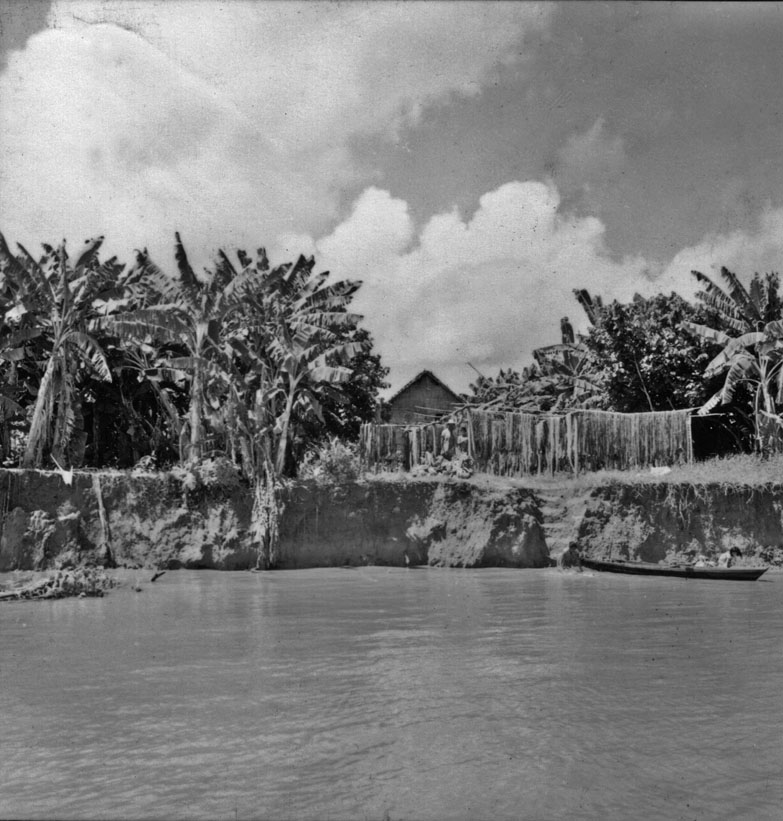Título: Casa de um juteiro, vendo-se bananeiras e secagem de juta (AM)