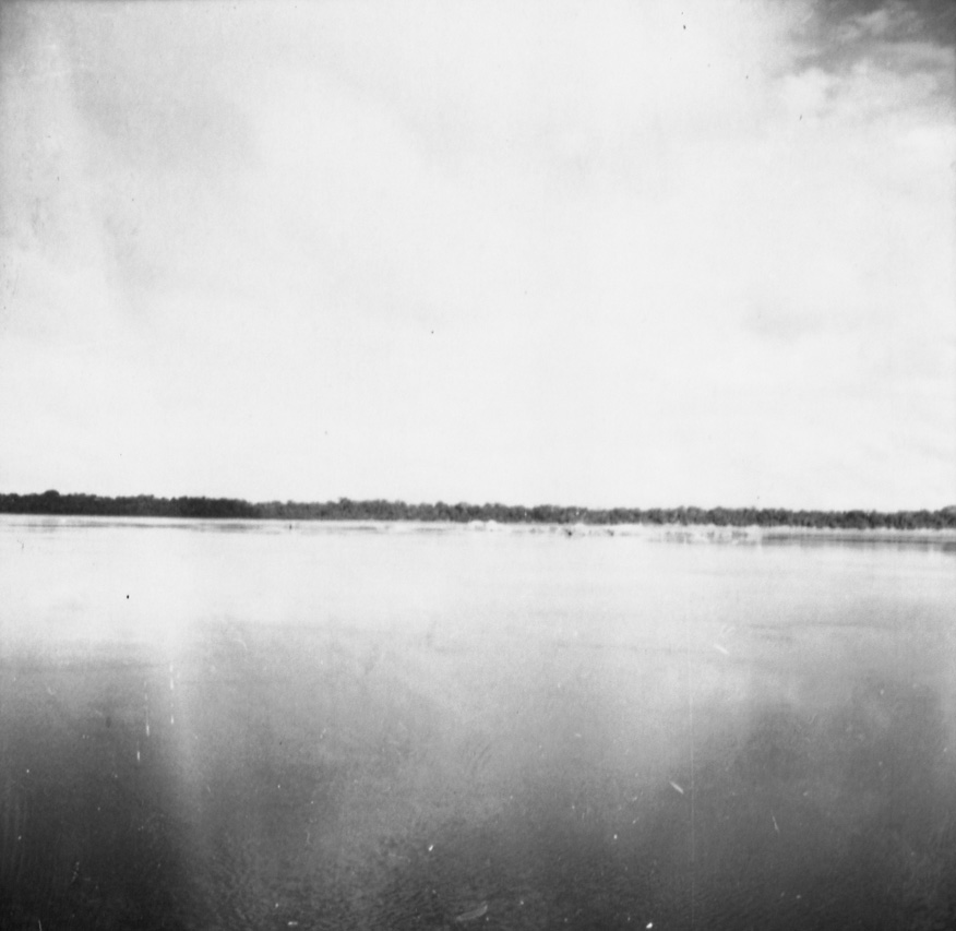 Título: Afloramento do cristalino no leito do rio, no último plano, mata em terra firme no Rio Negro, território de Roraima, próximo a foz do Rio Branco (AM)