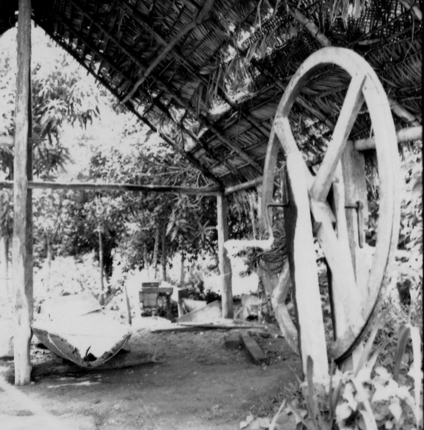 Título: Casa de farinha, detalhe da prensa e roda catita no município de Tauapecaçu (AM)