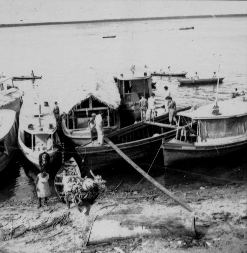 Título: Detalhe da praia de Manaus vendo-se embarcações fazendo comércio (AM)