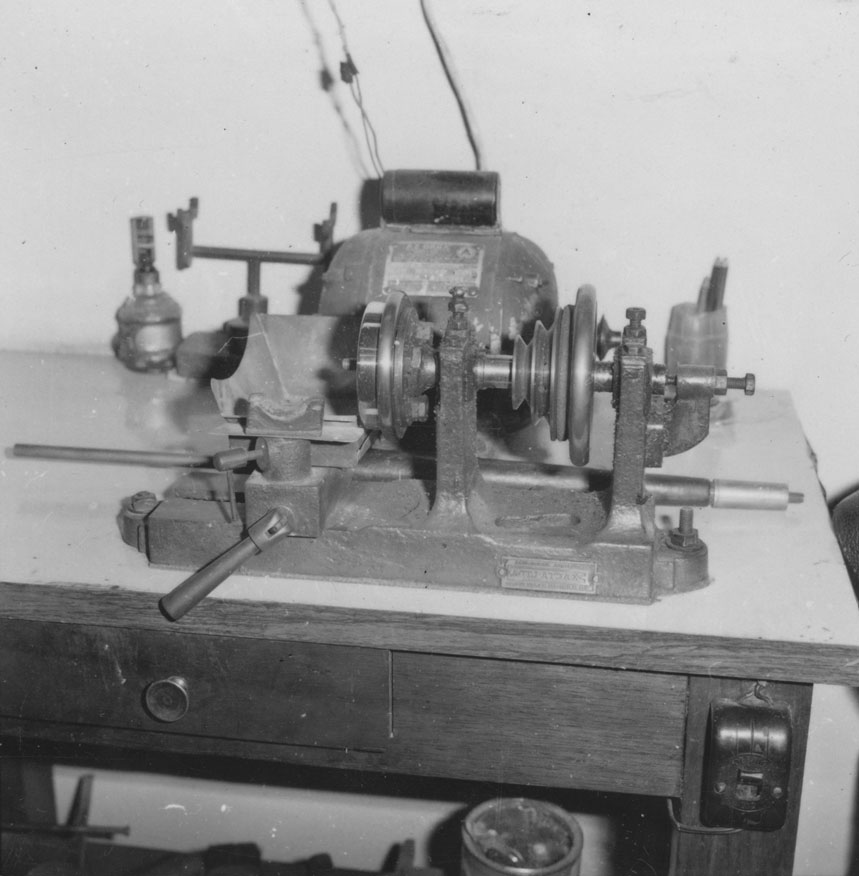 Notas: Negativo 19442. 1ª etapa da operação de lapidação do diamante, que leva de 1 a 2 dias com o objetivo de preparar as pontas, que podem ser 2,3, ou 4, no último caso, o diamante vira jóia.