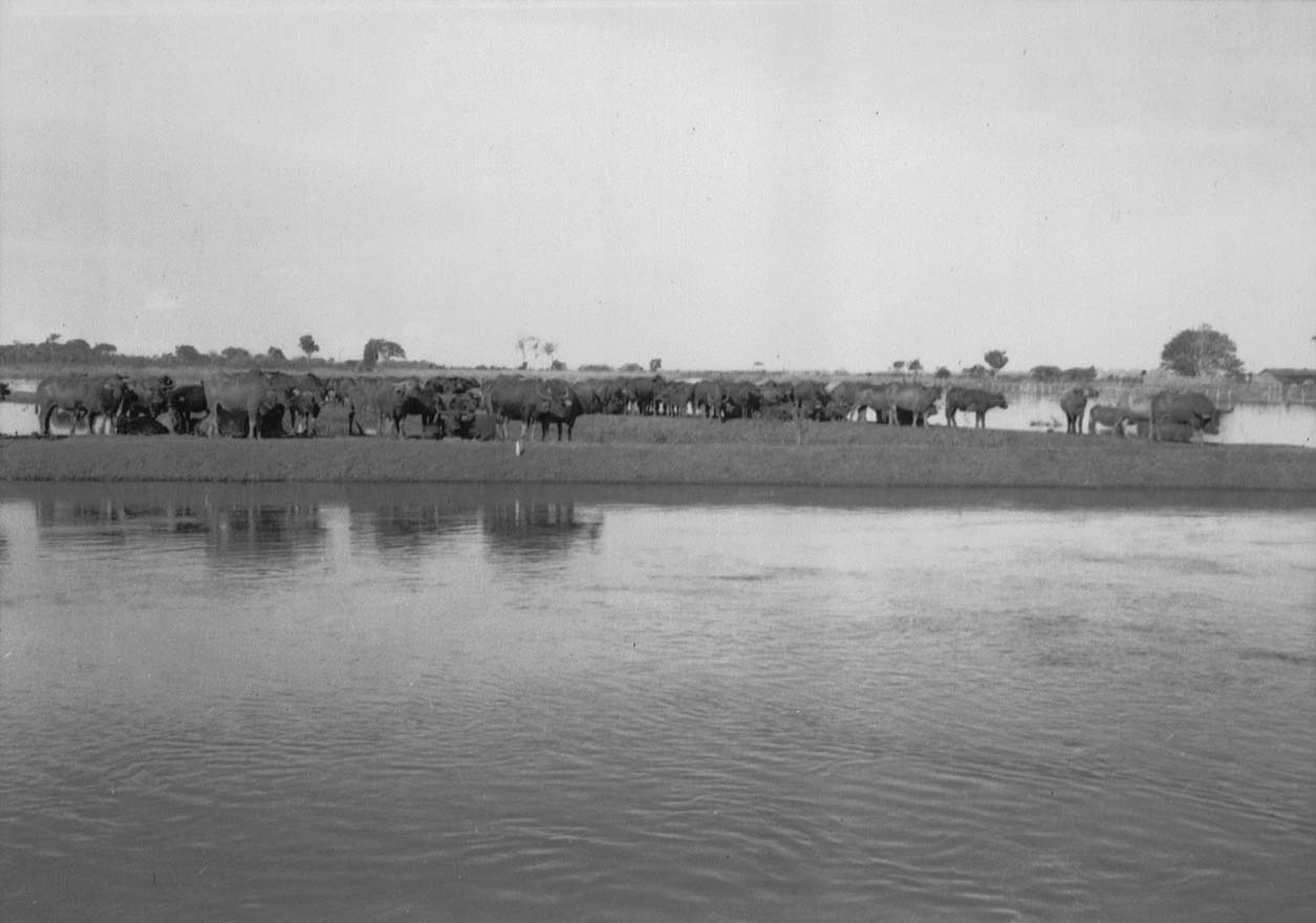 Título: Búfalos à margem do canal Maicurú