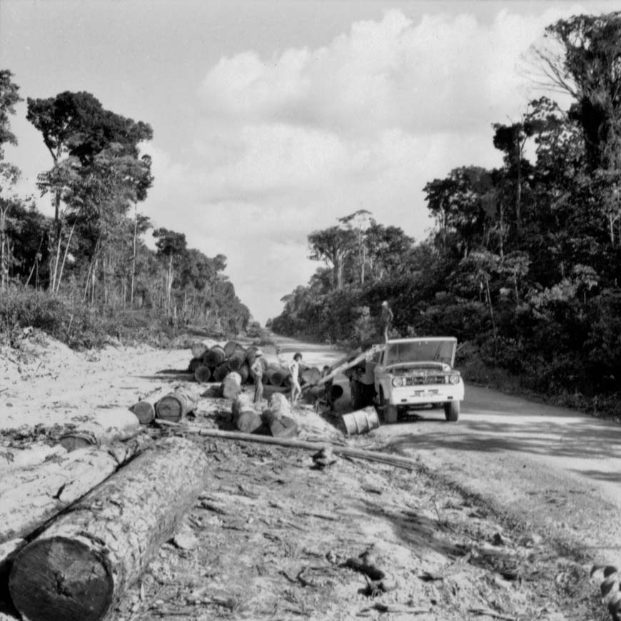 Caminhão carregando toras de cedro e maçaranduba,39 km ao sul do ramal para Belterra.