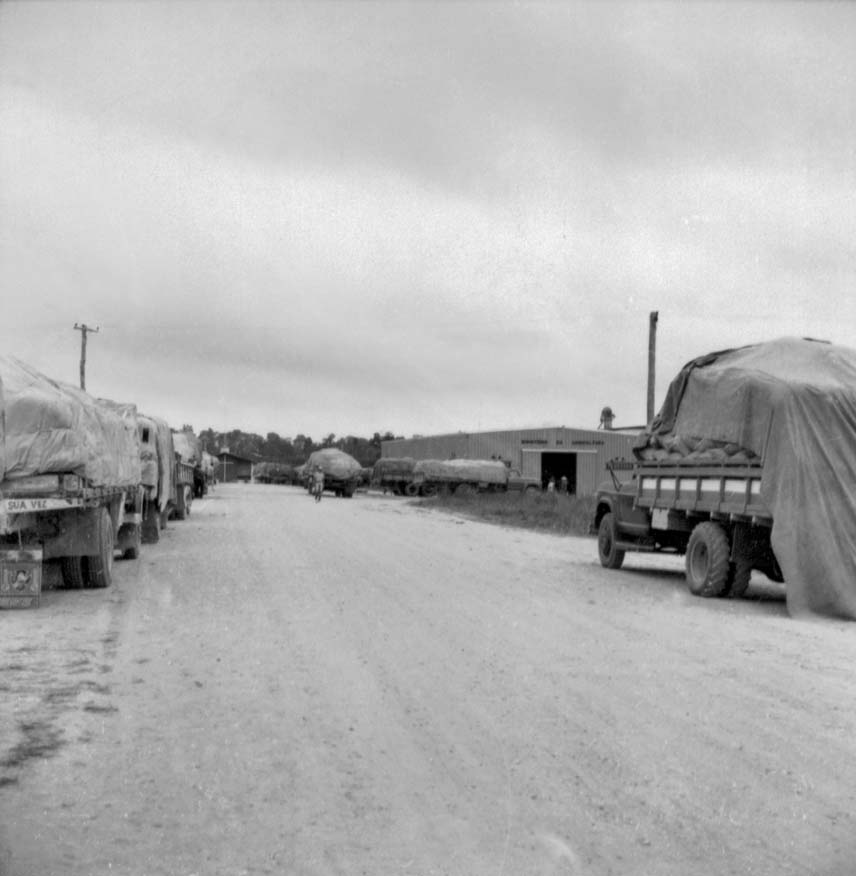 Caminhões carregados de arroz, na porta do armazém,na Transamazônica. A cidade está localizada na Mesorregião do Sudoeste do Pará.