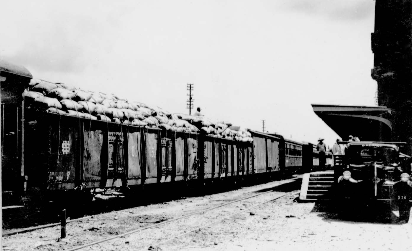 Título: Trem transportando carregamento de sementes do babaçu para exportação em São Luís (MA)